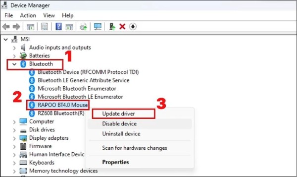 - Tìm đến mục Bluetooth, nhấp chuột phải vào thiết bị cần cập nhật.