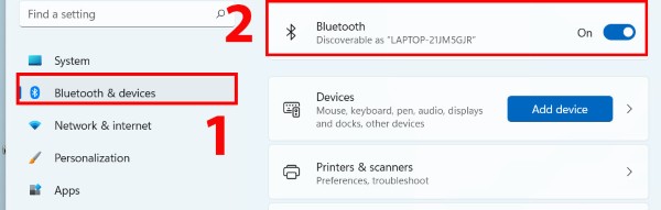 – Bluetooth chưa được bật: Kiểm tra lại bằng cách vào Settings → Bluetooth & Other Devices → Add Bluetooth or Other Devices, bật Bluetooth rồi thử lại.