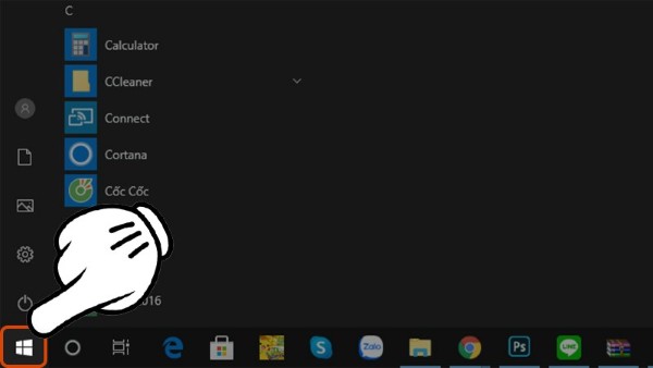 Bước 1: Nhấn Start để mở menu chính.
