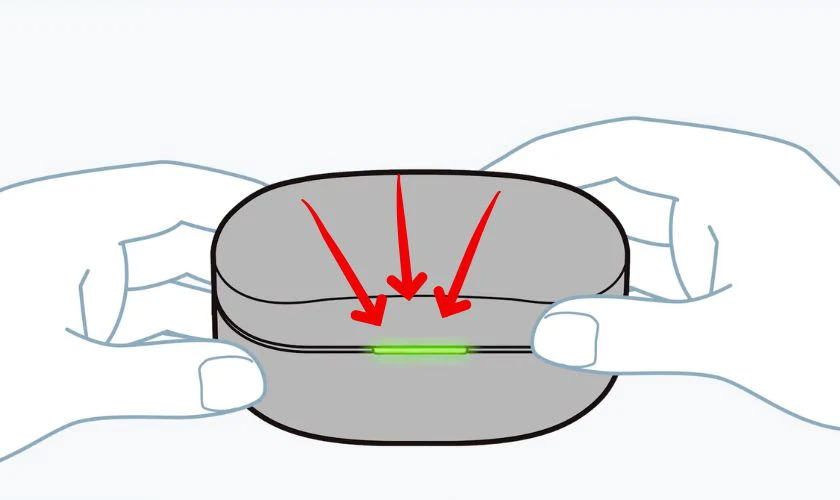 Bước 2: Sau khi tắt, lấy cả hai tai nghe ra khỏi hộp và đặt cạnh nhau khoảng 5 giây để đồng bộ. Khi đèn LED nhấp nháy, reset đã hoàn tất và tai nghe sẵn sàng kết nối lại.