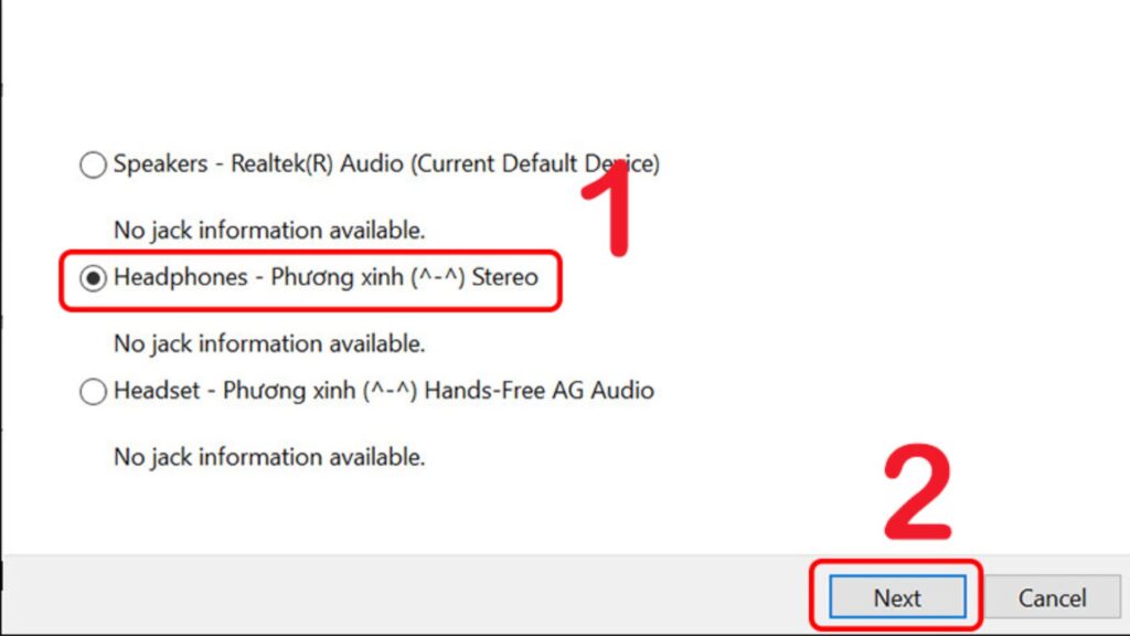 - Tích chọn Headphones (tai nghe Bluetooth) → Nhấn Next.