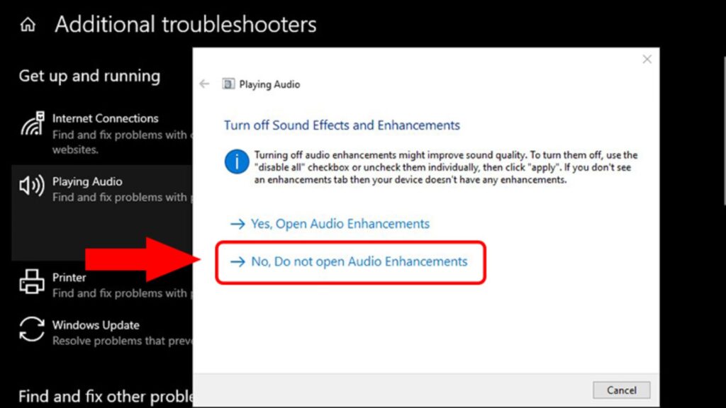 - Chọn No, do not open Audio Enhancements để bỏ qua tùy chỉnh hiệu ứng âm thanh.