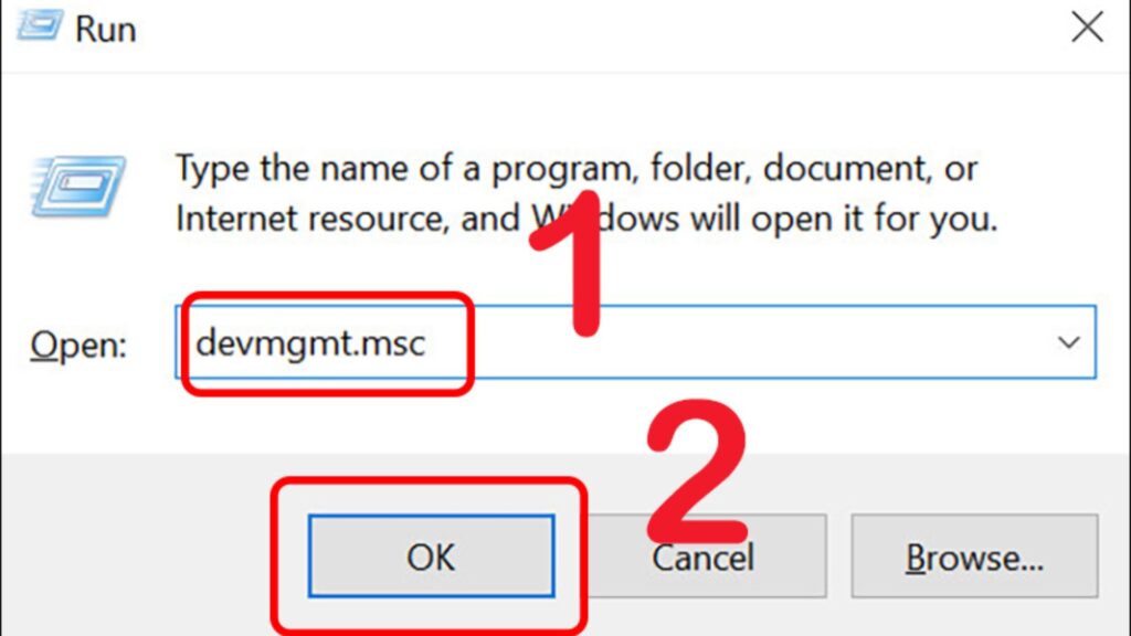 - Nhấn Windows + R → nhập lệnh devmgmt.msc → bấm OK.