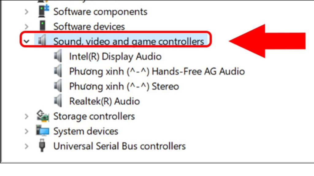 - Cửa sổ Device Manager mở ra, chọn mục Sound, video and game controllers hoặc Bluetooth.