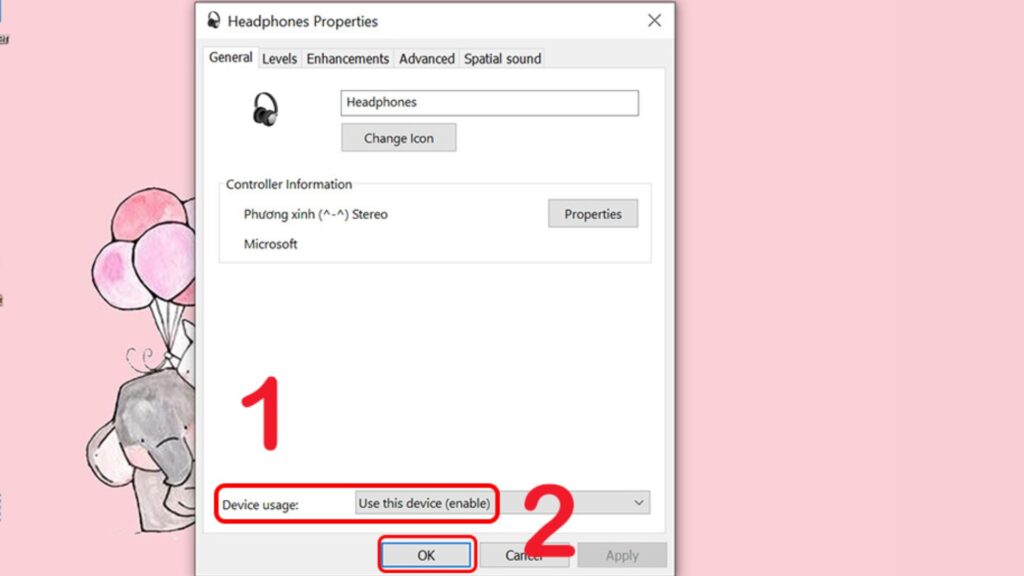 - Vào Properties → Device usage → chọn Use this device (enable) → bấm OK.
