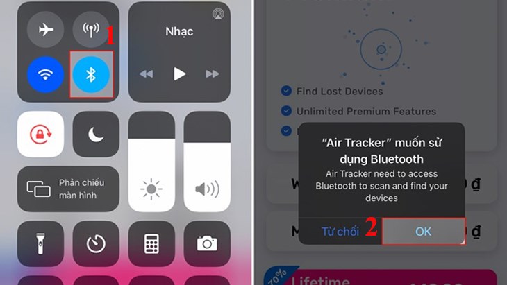 Bước 2: Bật Bluetooth và cấp quyền truy cập cho ứng dụng.