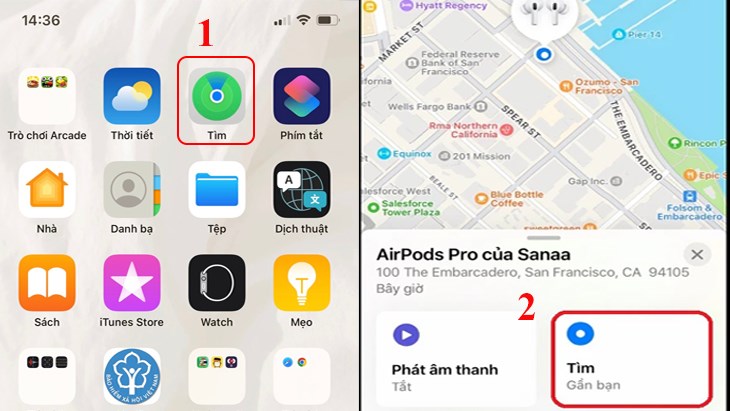 - Từ iPhone, iPad hoặc iPod Touch: Mở Cài đặt > Tìm > Thiết bị, sau đó chọn AirPods của bạn để xác định vị trí.