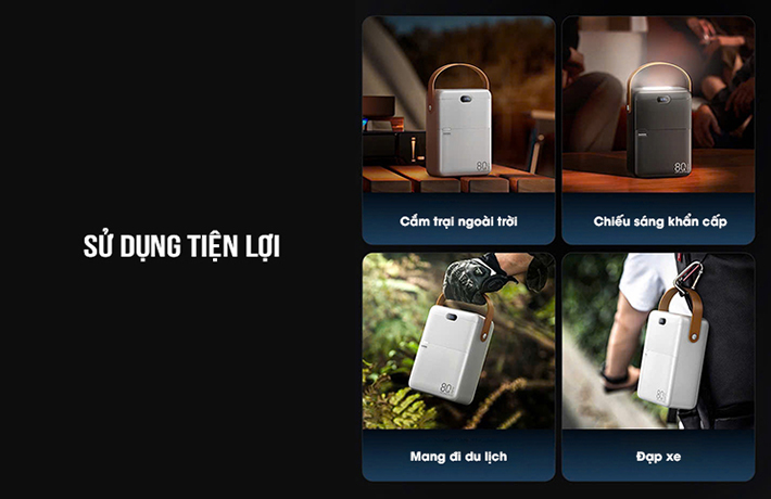 Khi đi du lịch hoặc cắm trại, sản phẩm vừa cung cấp nguồn sạc, vừa hỗ trợ chiếu sáng ban đêm, giúp tối ưu hành lý mang theo.